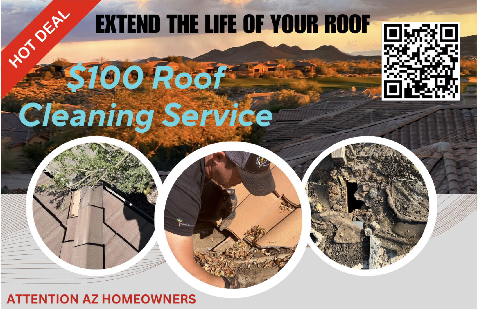 Are you an Arizona homeowner looking to protect your investment and ensure your roof’s longevity? Look no further! Our $100 roof cleaning special is designed to help you maintain a healthy and well-maintained roof.